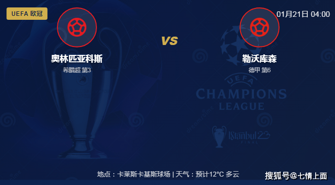 比赛背景与近况北京时间1月21日凌晨04:00,欧冠联赛将迎来一场关键对决。希腊豪门奥林匹亚科斯将坐镇著名的卡莱斯卡基斯球场,迎战远道而来的德甲劲旅勒沃库森。主队:奥林匹亚科斯——主场龙渴望逆袭奥林匹亚科斯目前在希腊超级联赛中排名第3,虽然在国内赛场表现尚可,但欧冠赛场形势严峻,目前仅积5分,距离淘...